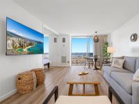Ilikai Marina. This turnkey unit features a full kitchen, modern finishes, and panoramic views of world-class surf spots right from your